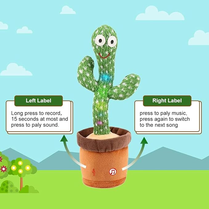 মজার ও চমৎকার খেলনা: এই রিচার্জেবল ডান্সিং ক্যাকটাস প্লাশ টয় সঙ্গীতের সাথে তাল মিলিয়ে নাচে, গাইতে থাকে ১২০টি চমৎকার গান! সারা দিন ধরে এটি আপনার শিশুকে হাসি এবং আনন্দ দিয়ে পূর্ণ করবে।